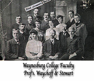 Excerpts from Obituary Professor Waychoff was born (April 12, 1849) in Muddy Creek, in Jefferson Township, Greene County, Pa. to Johnson and Delilah Rich Waychoff. He married Cemantha (Manty) Mundell, on November 26, 1873 and they had the following sons and daughters: Clyde C. Waychoff of Bellevue, Ohio; Glenn A. Waychoff of Tacoma, Washington; Attorneys Challen W. Waychoff, Roy J. Waychoff and Andrew J.Waychoff, Jr., all of Waynesburg; Oma Mary Hill, wife of Frank B. Hill, Waynesburg; and Nettie E., wife of Dr. Charles Roscoe Meek of Lorain, Ohio. He also has a brother, Hugh B. Waychoff of Auburndale, Florida; and one sister, Mrs. Lana Stewart, wife of Prof. E.D. Stewart, whose son Dr. Paul R. Stewart, is President of Waynesburg College. A graduate of Waynesburg College in 1873, he taught at several schools before returning to Waynesburg College where he taught geology for forty-one years. He was also Superintendent of the Public School System of Greene County, head of the Science Department and Vice President of the College for many years. He was considered the foremost authority on the history of Southwest Pennsylvania and conducted studies of the area as well as conducting excavations among the Cliff Dwellers and Pueblo Ruins of Arizona and New Mexico; accompanied whaling excursions on the Pacific and made a study of the remains of ancient man on the Channel Islands off Southern California. He was a member of the State Historical Society of Ohio and helped organize the Greene County Historical Society, serving as its first President. Also see: Waynesburg College Memoriam |