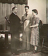 The minister of the UBS Church, Rev. Walter Throop ,officiated. The bride asked for a short service as she didn't want to repeat (recite) a long one. "I never realized it would or could be as short as it was!" Literally, Rev. Throop said, "Dearly beloved, we are gathered together....... Do you, Charles, take this woman to be your lawfully wedded wife? Dorothy, do you take this man to be your lawfully wedded husband? I now pronounce you man and wife".