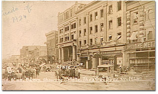 On June 24, 1924, a terrible tornado desecrated the entire northern half of the city, with our house exactly in the middle of the destruction. My cousins from Waynesburg, Penna. and I had many times enjoyed swimming in the placid Lake Erie, but suddenly, on this date, the lake was drawn up into the clouds and dumped on our area, fish and all. On this day, I had gone over to visit my friend Robert Farris, whose father was a very good friend of Papas and a Principal at Brownell Grade School. Bob was teaching me how to play poker, using rubber bands as collateral. He lived on Oberlin Ave. near a butcher shop where we often bought our meat. It was about two blocks from our house. Mamma had a strange feeling she should call Mrs. Farris and ask her to send me home immediately. |