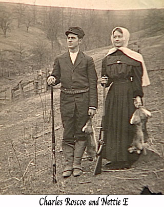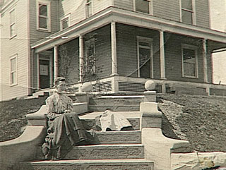 We always had a big Sunday dinner after church. Grandma Waychoff set the table in the dining room with a beautiful white linen tablecloth, hand painted dinner plates, sparkling silverware and glasses, and lighted candles. It was very special! I was allowed to sit up at the big table with the grown ups. We held hands around the table, bowed our heads, and thanked God for all our blessings. I thank God for giving me my Grandma and Grandpa Waychoff, and of course, for my brother and my mamma and papa, Aunt Oma and Uncle Frank and my favorite cousins. It was a great day! I remember being very quiet and listening to every body talking at once. It was surely noisy! On the sideboard were stashed all kinds of pies, cakes and cookies. Grandma also kept a dish of pink mints on the inside of the cabinet, that I dreamed about. My! All nice things to eat. A big platter of browned fried chicken, a big casserole with a lid on it full of mashed potatoes, accompanied by a gravy bowl full of brown chicken gravy, a whole pot full of fresh green peas that Grandma said she had cooked in a whole pound of butter, and enough corn on the cob fresh out of the garden for all of us to eat. Big puffy homemade biscuits peeped out of a covered warming basket, followed by homemade strawberry jam and honey. Grandma raised the strawberries and kept boxes of honeybees. I think that she must have worked hard to get everything ready for us, although I never saw her work at all while I was there. Everything seemed to take place. Grandma always had time for me and everything was perfect. The great big linen napkins were extra special, and I liked to dip my fingers in the finger bowl full of water which was passed around the table at the end. Then we all went to the front porch and enjoyed each other all afternoon. I do not know who did the cleanup. It just happened, I guess. The porch went all across the front of the house, past the front door that entered the parlor, and swung around the whole length of the side of the house to the side door, which entered the living room. A full sized wooden swing was on one end of the front of the porch. It was padded with a soft cover and soft cushions Grandma had made. On the lattice, behind and beside the swing, blossomed yellow honeysuckle, giving wonderful cool shade and delightful fragrance to the summer air. The honeybees were busy all day long going in and out of the flowers. That was nice! The floor was covered with a tightly woven straw like carpet that felt cool on my bare feet, and I could smell the red roses that climbed on a long trellis clear across the side porch. Grandma had a big bed of pink and white petunias blooming by the side door. That smelled wonderful. She said that they seeded themselves every year, which I have found since is quite unusual. I wish I had saved some of the seed from her petunias. My cousins were all about the same age. We were full of energy and happy to be together. We ran furiously after each other all afternoon, from the front of the house to the back, and rolled down the bank of grass in front of the house until we were stopped by a cement wall at the bottom, and we did it over and over again. When we got too hot, we would race around the house to the pump at the back of the house and dip our heads in a bucket of cold water. There was an outhouse out back, where I liked to hide and watch spiders weave their webs, all by myself, and nobody knew where I was. It was fun to look at the toys in the Montgomery Ward catalog. Grandma had put the catalogue there for us to use as toilet paper. Grandma Waychoff had a wonderful large kitchen with a big pantry. In the pantry was a pump for fresh, cool water, with a metal cup hanging onto a bucket. Everybody drank out of the same cup by dipping it into the bucket. We didn't worry about germs in that day. Sometimes she would take me to her cupboard and ask me if I would like a cookie. A long table in the kitchen was where everybody came down early for breakfast each morning. It smelled like homemade bread, toast, milk and cereal, fruit and bacon and eggs. My Grandpa Waychoff would slip down the back stairs with his bare feet. He liked to wiggle his toes in the grass when it was covered wet with early morning dew. This delighted me because I knew Grandpa Waychoff was a college professor. Grandpa liked to play with me. He would chase me up the back stairs from the dining room, through the long hall past all the bedrooms, down the front stairs into the room off the parlor, through the door into the dining room and chase me up the back way again ! Meanwhile, his feet were making terrible noises as he shouted, "Watch out! I am coming after you !". I was not afraid of him, but ran as fast as I could, because I was delighted that he was playing with me. Grandpa Waychoff was a scientist, taught astronomy [geology], and was to be found upstairs in his study room. I could tiptoe into his room and find him leaning over his desk, wearing a green visor, studying. He let me go about my business and see everything, bookcases and glass covered shelves full of his treasures, Indian relics, starfish, porcupine fish, dried skins of rattlesnakes, corals, curious shells of all kind of everything imaginable, even a real skeleton standing in the corner of the room. Grandpa had traveled with the National Geographic Society when they excavated Indian mounds down through Ohio. He talked to me a lot as if I were somebody he "liked" and I surely liked him ! He told me how he ate his grapefruit with brown sugar on it. I had never heard of that. I ate it with salt. I found out, too, that he "loved" potato skins. My mother took my brother and me on the train to Grandmas every summer after school was out. We would stay a month or so. Grandma Waychoff could not hear very well unless we yelled in her ear. Papa would say, when we came back home again, that we were yelling all the time, but we did not know that we did. She had a long ear phone