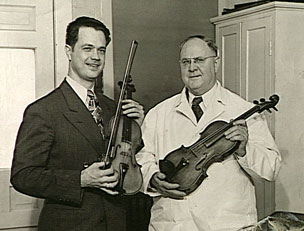 August 2, 1958 started out as any normal Saturday, with high hopes of enjoying a day with our neighborhood friends building forts in the fields that surrounded our house. Only when I got up that morning, having come downstairs to see my mother on the phone with a very concerned look on her face, I suspected this Saturday would be different than any other. It was a little while later I learned my grandfather had just passed away. I was only ten years old at the time. My grandfather loomed very large in my short experience, just like his physical stature, and his image would grow even larger over the years. Much of this is because he had two children that loved him very much and frequently related stories that showed the best of this man, and in part because of a very limited view of the world as seen through tiny eyes. As I grow older I realize images often become exaggerated. And yet, while I have become more capable of sorting out fact from fiction, those early opinions of Dr. Meek nevertheless continue to withstand the test of time. Even at just ten years of age, there are many things I remember. I remember him as large, yet gentle. He could be stern but I always felt fair. We often spent a weekend, or part of one anyway, at my grandparents home on Hamilton Ave., just west of Lorains downtown section. When at their house, we seldom saw grandpa except in the evening. He had his private practice set up on the second floor. I generally recall sleeping on the second floor and watching Captain Kangaroo in the morning on a TV he had in what I believe was his patients waiting room. Because of his late hours and late night emergency calls, grandpa slept in a bedroom off the living room while grandma slept in a smaller bedroom back by the kitchen. Sometimes, we were allowed to sleep on the couch in the living room. It was there that I remember being awakened late at night as grandpa turned on the TV to listen to the Saturday night fights, then relax in his cloth and brown vinyl recliner with spittoon on the floor to the right. I remember the TV ads for Gillette razors that always seemed to come on just a little louder than the main program. Then there were the occasional times my grandfather would set up his two-reel tape recorder to capture the voice of President Eisenhower from the TV set. Once, in his last year, he woke Lowell and me up while we slept on that couch and asked us if we were hungry. On condition of not waking grandma, he took us out to a little all-night diner at about 2 am where I remember eating a very greasy hamburger, but it was good. He seemed very pleased we didn't wake grandma up. There were the penny games he would play with Lowell, David and me where we needed to correctly guess whether it would come up heads or tails. If correct, we got the coin. There were the card games I used to watch him play with my father and friends. One day, when my father needed to temporarily leave the table during a game of Florida Canasta, I was allowed to sit in for him and promptly won the first two hands I played. While I didn't often play cards with him after that, I always felt he had confidence in me if I would. It wasn't until later I realized just how good a card player grandpa was in his own right. Grandpa had a large, lima bean green Chrysler Imperial I used to think was something of a limousine. I once thought he was an excellent driver, since he was slow and deliberate. Later, I came to realize that the people honking at him weren't because he knew them but because he was driving too slowly, across lanes and the center line and even, later, I actually saw him go through a red light on East Erie Boulevard. Later, his habit of weaving in traffic began to unnerve me some. My father once related that grandpa took a trip out west by car but hired a driver. Guess this was best, only he drove the driver nuts by having him stop at each and every historical marker along the way. Grandpa made violins and would hang them up over the piano on the enclosed front porch to dry after putting a finish on them. One day, he showed me a white violin he said he was making for me. I had to tell mom later I had no interest in violin and assume she told grandpa, as I never heard anything more about it until it was later given to my younger brother. As I have said, generally two or more of us spent the weekend at his house. But one Friday, after going to his house that afternoon, David, Lowell and I decided we wanted to go home Friday night because we had plans on playing with our neighbors. David had brought his bow and arrow set and a target, which was set up outside on the front lawn. After shooting arrows for a little while, grandpa came out to join us. I can vividly recall him picking up the bow, placing an arrow on the string, holding the bow and the arrow close to his face and pulling back on the string until he touched his nose. I don't remember whether he hit the target or not but the image of him touching his nose with the arrow and string just tickled me to no end. He played with us a little bit but not too long, as I recall. Anyway, mom came to pick us up and return us home. That was August 1, 1958 ! There was a funeral procession to Waynesburg, Penna. to put grandpa to rest. I was in the back seat of one car several cars from the lead, driven by my mother. On the trip over, we were almost run off the freeway by a trucker but still managed to get there safely. I don't remember much of the actual funeral service at the burial site but do remember going to my cousins (Charles Leslie Carpenters) Dairy Cream Shop afterward to get ice cream. We even were present as the ice machine came crashing through the front window ! It was, as far as I can remember, my first trip to Waynesburg and I remember being struck by the big, old Victorian type houses and what seemed like many relatives who were farmers. For weeks later I remember still going to grandmas on the weekends. I don't remember much change 
