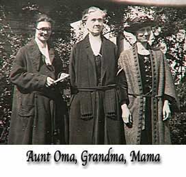 We always had a big Sunday dinner after church. Grandma Waychoff set the table in the dining room with a beautiful white linen tablecloth, hand painted dinner plates, sparkling silverware and glasses, and lighted candles. It was very special! I was allowed to sit up at the big table with the grown ups. We held hands around the table, bowed our heads, and thanked God for all our blessings. I thank God for giving me my Grandma and Grandpa Waychoff, and of course, for my brother and my mamma and papa, Aunt Oma and Uncle Frank and my favorite cousins. It was a great day! I remember being very quiet and listening to every body talking at once. It was surely noisy! On the sideboard were stashed all kinds of pies, cakes and cookies. Grandma also kept a dish of pink mints on the inside of the cabinet, that I dreamed about. My! All nice things to eat. A big platter of browned fried chicken, a big casserole with a lid on it full of mashed potatoes, accompanied by a gravy bowl full of brown chicken gravy, a whole pot full of fresh green peas that Grandma said she had cooked in a whole pound of butter, and enough corn on the cob fresh out of the garden for all of us to eat. Big puffy homemade biscuits peeped out of a covered warming basket, followed by homemade strawberry jam and honey. Grandma raised the strawberries and kept boxes of honeybees. I think that she must have worked hard to get everything ready for us, although I never saw her work at all while I was there. Everything seemed to take place. Grandma always had time for me and everything was perfect. The great big linen napkins were extra special, and I liked to dip my fingers in the finger bowl full of water which was passed around the table at the end. Then we all went to the front porch and enjoyed each other all afternoon. I do not know who did the cleanup. It just happened, I guess. The porch went all across the front of the house, past the front door that entered the parlor, and swung around the whole length of the side of the house to the side door, which entered the living room. A full sized wooden swing was on one end of the front of the porch. It was padded with a soft cover and soft cushions Grandma had made. On the lattice, behind and beside the swing, blossomed yellow honeysuckle, giving wonderful cool shade and delightful fragrance to the summer air. The honeybees were busy all day long going in and out of the flowers. That was nice! The floor was covered with a tightly woven straw like carpet that felt cool on my bare feet, and I could smell the red roses that climbed on a long trellis clear across the side porch. Grandma had a big bed of pink and white petunias blooming by the side door. That smelled wonderful. She said that they seeded themselves every year, which I have found since is quite unusual. I wish I had saved some of the seed from her petunias. My cousins were all about the same age. We were full of energy and happy to be together. We ran furiously after each other all afternoon, from the front of the house to the back, and rolled down the bank of grass in front of the house until we were stopped by a cement wall at the bottom, and we did it over and over again. When we got too hot, we would race around the house to the pump at the back of the house and dip our heads in a bucket of cold water. There was an outhouse out back, where I liked to hide and watch spiders weave their webs, all by myself, and nobody knew where I was. It was fun to look at the toys in the Montgomery Ward catalog. Grandma had put the catalogue there for us to use as toilet paper. Grandma Waychoff had a wonderful large kitchen with a big pantry. In the pantry was a pump for fresh, cool water, with a metal cup hanging onto a bucket. Everybody drank out of the same cup by dipping it into the bucket. We didn't worry about germs in that day. Sometimes she would take me to her cupboard and ask me if I would like a cookie. A long table in the kitchen was where everybody came down early for breakfast each morning. It smelled like homemade bread, toast, milk and cereal, fruit and bacon and eggs. My Grandpa Waychoff would slip down the back stairs with his bare feet. He liked to wiggle his toes in the grass when it was covered wet with early morning dew. This delighted me because I knew Grandpa Waychoff was a college professor. Grandpa liked to play with me. He would chase me up the back stairs from the dining room, through the long hall past all the bedrooms, down the front stairs into the room off the parlor, through the door into the dining room and chase me up the back way again ! Meanwhile, his feet were making terrible noises as he shouted, "Watch out! I am coming after you !". I was not afraid of him, but ran as fast as I could, because I was delighted that he was playing with me. Grandpa Waychoff was a scientist, taught astronomy [geology], and was to be found upstairs in his study room. I could tiptoe into his room and find him leaning over his desk, wearing a green visor, studying. He let me go about my business and see everything, bookcases and glass covered shelves full of his treasures, Indian relics, starfish, porcupine fish, dried skins of rattlesnakes, corals, curious shells of all kind of everything imaginable, even a real skeleton standing in the corner of the room. Grandpa had traveled with the National Geographic Society when they excavated Indian mounds down through Ohio. He talked to me a lot as if I were somebody he "liked" and I surely liked him ! He told me how he ate his grapefruit with brown sugar on it. I had never heard of that. I ate it with salt. I found out, too, that he "loved" potato skins. My mother took my brother and me on the train to Grandmas every summer after school was out. We would stay a month or so. Grandma Waychoff could not hear very well unless we yelled in her ear. Papa would say, when we came back home again, that we were yelling all the time, but we did not know that we did. She had a long ear phone